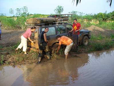Tag kämpfen wir uns durch schlammiges Grassland und Wasserlöcher.