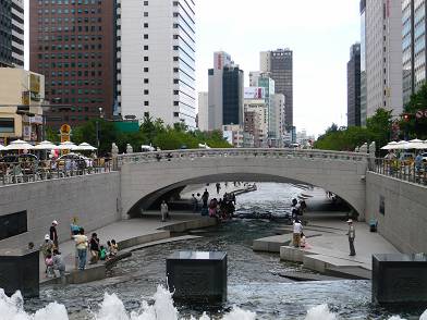 Modernes Zentrum von Seoul - Erholungsraum Cheong Gye Cheon Fluss