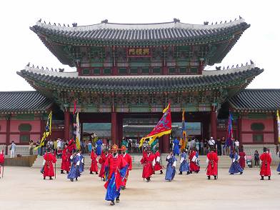 Traditionelles Zentrum von Seoul - Parade vor dem Gyeongbokgung Palast