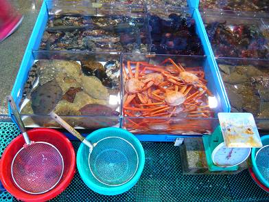 Der wichtigste Platz ist zweifelsohne der Fischmarkt und in kleinen Glasboxen wird alles angeboten was in irgendeiner Weise essbar ist.