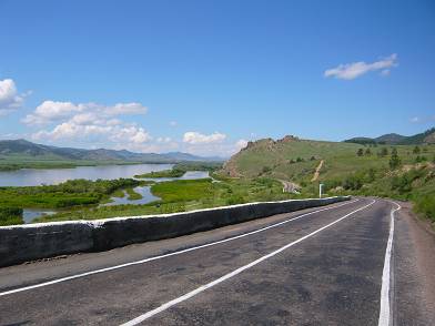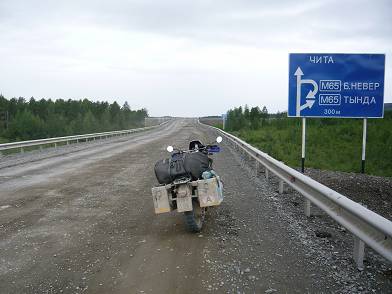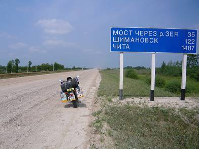 Bei Khabarovsk überquere ich den Amur, den nördlichen Grenzfluss zu China und schwenke auf den Trans Sibirien Highway. Diese Strasse wurde vor 2 Jahren vom damaligen Präsident Putin eröffnet. Sie stellt die einzige Überlandverbindung zwischen dem Europäischen und dem Asiatischem Russland dar und führt, zumindest offiziell, von Moskau nach Vladivostok. Mein Russischer Autoatlas von 2008 zeigt den Straßenverlauf im kritischen Teilstück zwischen Tynda und Chita jedoch noch nicht an und ich hoffe ich kann diese rund 1000 Kilometer wirklich befahren.