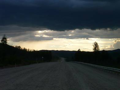 Bereits gegen Nachmittag ziehen wieder dunkle Wolken auf und der Himmel wird mit einem Schlag fast nachtschwarz. Diese extremen Wetterwechsel sind gerade in der Einsamkeit Sibiriens höchst beeindruckend und sie lassen einen deutlich die Größe und die Gewalt der Natur verspüren. Wenn die schweren Wolkenbänke im Sturm über den Himmel ziehen und die Donnerschläge der Gewitter in den Bergen wiederhallen fühlt man sich plötzlich sehr unbedeutend und klein. Ich habe zudem großes Glück, bis jetzt haben mich die berüchtigten Hagelstürme der Region verschont. Die Auswirkungen dieser Wetterstürze, mit ihren tennisballgroßen Hagelkörnern, können verheerend sein.