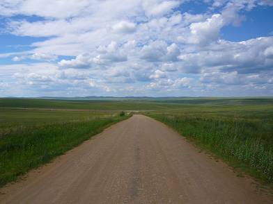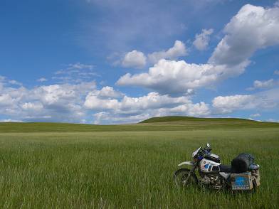 Rund 200 Kilometer vor Chita lasse ich die dichten Wälder hinter mir und die Piste führt durch hügeliges Grasland. Jetzt bessert sich auch das Wetter. Nach mittlerweile 4 Tagen kann ich endlich mein Regengewand ablegen.