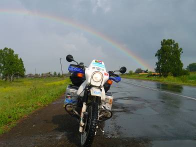 Der Wettergott meint es leider weniger gut mit mir. Nach den heftigen Nachmittagsgewittern ist das Motorrad zwar frisch gewaschen und es gibt auch immer wieder wunderschöne Regenbogen zu bestaunen, die Temperatur fällt dabei leider auch beträchtlich ab und ich fahre ständig mit voller Winter und Regenausrüstung.