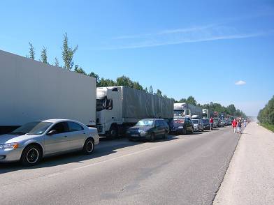 Heute erreiche ich die Grenze zu Lettland. Die Blechkolonne reicht mehr als 10 Kilometer zurück und ich kann die LKWs mit dem Motorrad glücklicherweise sehr leicht überholen.