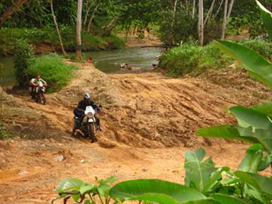 die schlammigen Sandbänke überwunden haben führt die Piste in die Berge.