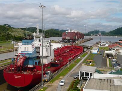 mit dem Pazifischen Ozean und wird pro Tag von rund 35 bis 40 Großschiffen
