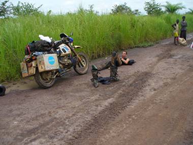 travel overland on the piste on the river banks through the democratic Republic