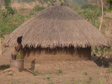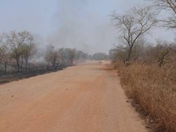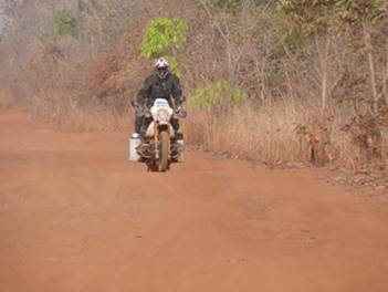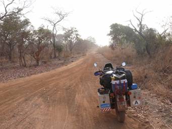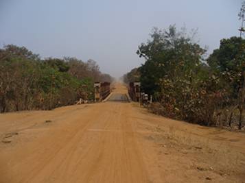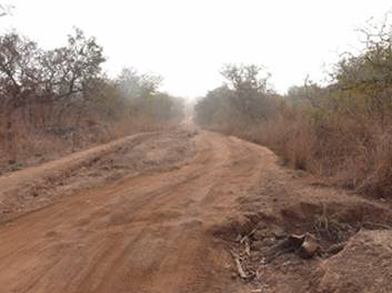The good piste road leads through the bush passing by small villages.