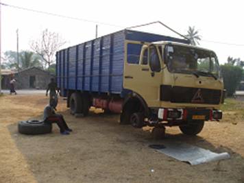 of the truck, who does not drive himself but kind of supervises the driver. Between them, sort of squeezed in another friend of the owner takes
